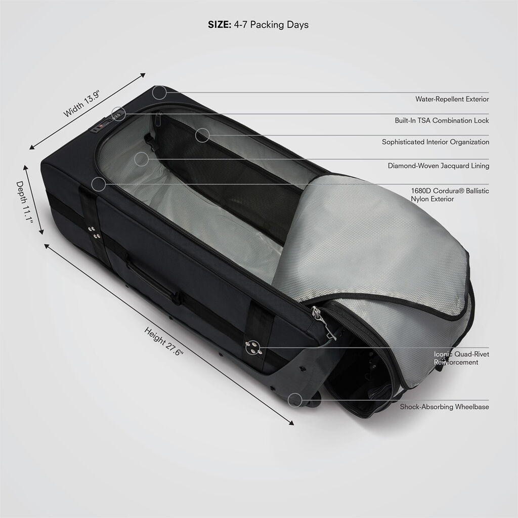 Built with military-grade CORDURA® Ballistic Nylon, this durable, protective, soft-sided checked luggage offers maximum storage for longer trips and is crafted with ultra-premium materials. The Tour Check-In features full-grain leather handles and a built-in TSA-approved lock to help secure your valuables during travel. Engineered to last, this Check-In luggage gives you the freedom to pack more, for longer adventures.