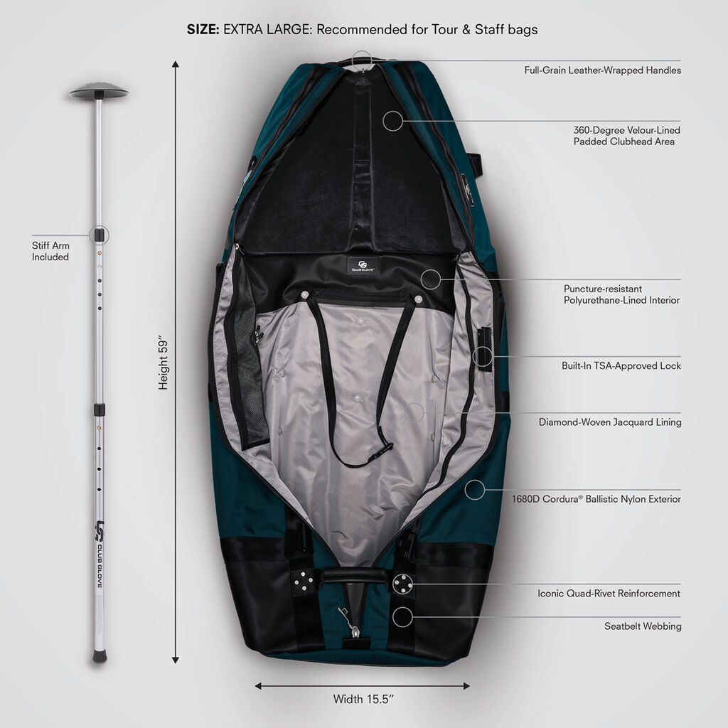 Included with every traveler, ensure your clubs are safe with an adjustable stiff arm, built to protect your drivers and woods from compression.